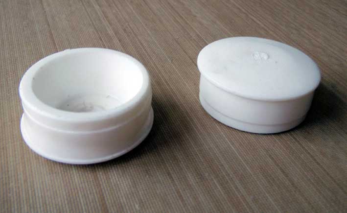Пластиковая заглушка на окончании трубы и кница с металлическим штырьком.